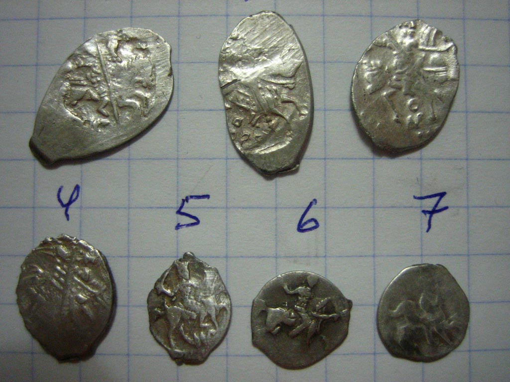 QUOTE(Mr.Menyala @ Nov 22 2012, 19:24) 1-новгор.коп.Лжедмитрия1-го,1605;2-его же моск.коп.;3-псковск.коп.Бориса Годунова,1604-1605гг. дополню КГ247, КГ241, КГ205. со средней, кстати, можно поздравить - VI степень редкости |