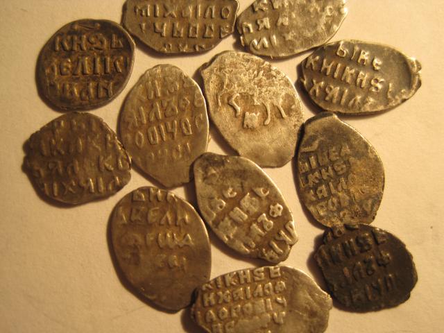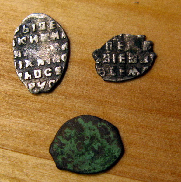 QUOTE(schutze @ Jan 6 2013, 22:18) Попались под лопату вот эти чешуйки. Но я в них совсем не силен. Сопуткой к этим чешуйкам, попался серебряный крестик. Как определили в профильном разделе конец 16 - начало 17 В Одна из чешуек мне видится чешуйкой Петра I или я ошибаюсь? Вторая Михаил Федорович? Медная чешуйка под устала, ее видно уже не определить... Что скажите? Петр - да. Михаил Федорович - нет, сын его - Алексей Михайлович. медь тоже его |