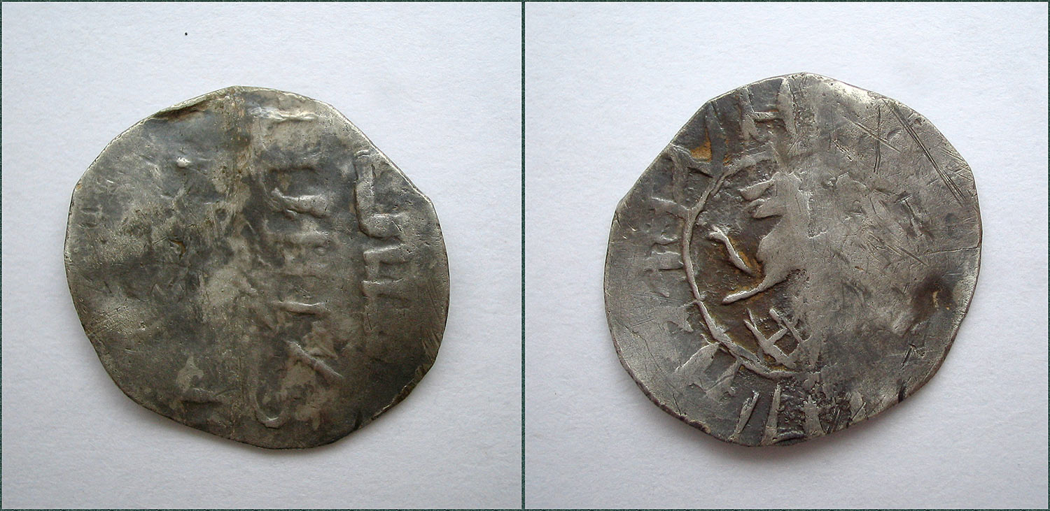 QUOTE(Kopalych @ Apr 28 2013, 18:51) Уважаемые знатоки чешуи, помогите пожалуйста!...... Фальшак Смутного времени, вероятно под Василия Ивановича Шуйского. -------------------- Куплю бронзовые замочки "лошадки" 14-15 вв. (половинки и целые) . Предложения в личку.