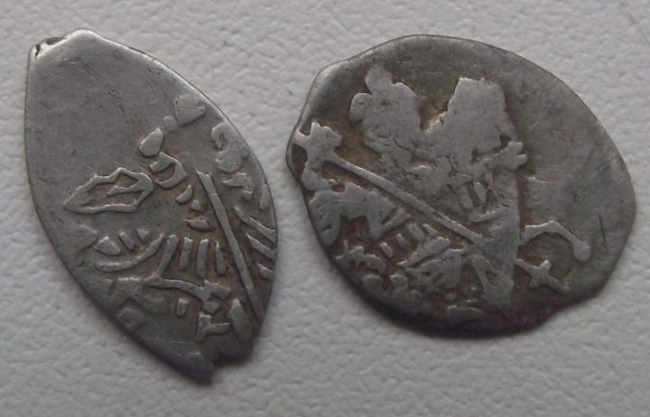 QUOTE(elle @ Apr 30 2013, 19:28) Спасибо за помощь! А третья монетка, которая 0,25 - это обломок или просто так задумано? Были монеты с таким весом? (Там предпологаемое место слома ровное чересчур, патиной покрыто одним цветом со всей монетой) Она очень сильно обрезана - вся верхняя часть всадника "ушла". Очень распространенное проявление денежного воровства в правление Василия 3-го. |