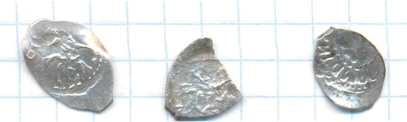 QUOTE(Dzhaffar @ May 4 2013, 12:02) доброго времени Уважаемое сообщество. пожалуйста, помогите атрибутировать... ну и по цене, если кто в теме. заранее благодарен. вес 0,39 гр., кроме средней - незначительно обломан краешек. с обломышем - 0,39 гр. 1,2 Иван III 3 он же или Тёмный, для атрибуции нужна другая сторона. -------------------- новый каталог по царской чешуе