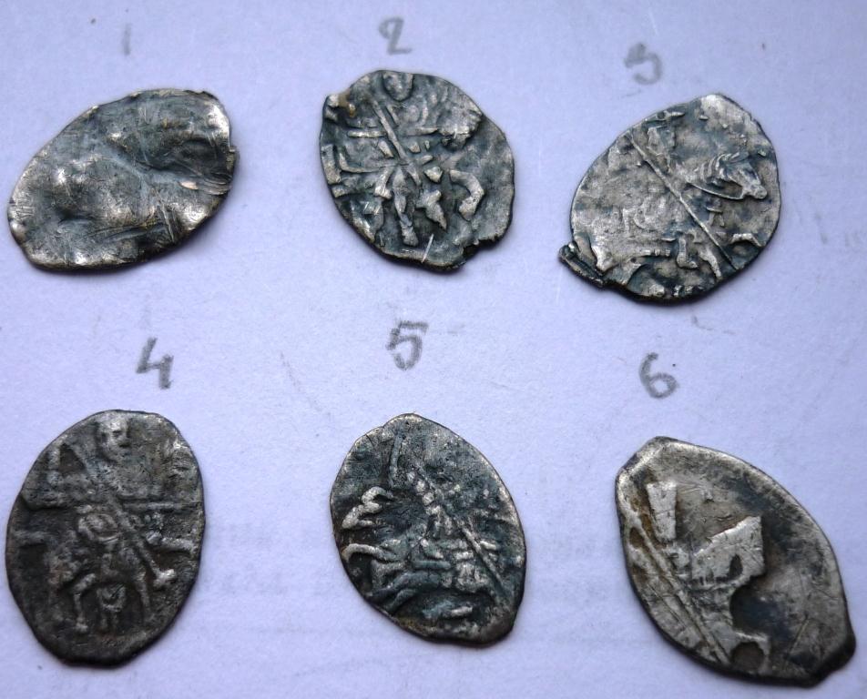 Подскажите пожалуйста по медным чешуйкам.У двух чётко просматривается птица на обороте.Склоняюсь к Грозному.Из сопутки Алтын. И есть ли материальная стоимость? Монеты в фото идут по порядку. Спасибо! -------------------- Ничто просто так не проходит....\/