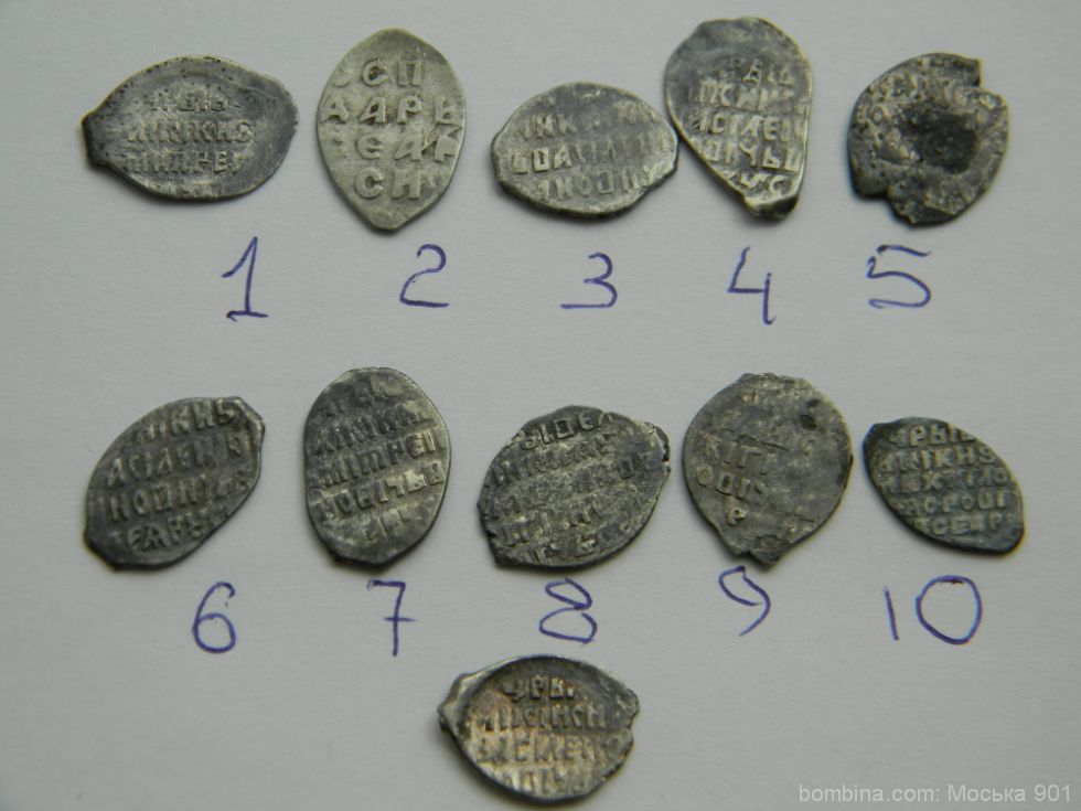 QUOTE(ингит @ May 7 2013, 10:45) Добрый всем день. Подскажите пожалуйста по степени редкости данных чешуек,и по цене если можно.Всем ответившим-Спасибо. 1,7-коп.Лжедмитрия I;2-новгор.денга Вас.III;3,4,6,11-коп.Вас.Шуйского;10-коп.Михаила Фед-ча;5-новг.коп.Федора Ив-ча;8,9-мос.коп.с им.Владислава.Все простое. |