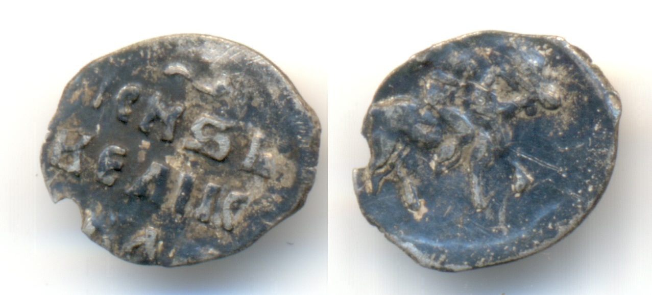 QUOTE(skrukov @ Jun 17 2013, 19:33) Подскажите по чешуйке. Вроде как Иван 4 кг 21 но во второй строке не хватает последней буквы I. просто не поместилась. похоже на 21. |