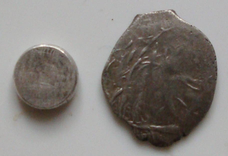 QUOTE(андридис @ Jul 28 2013, 19:27) Здравствуйте. Определите монетку. Вес 0,94. Рядом была найден серебряный кругляшок. Вес его обсолютно такойже, что и у монеты. Может ли это быть весовая гирька? Я в сомнениях,уж больно правильная форма. Место находки Талдомский р-н МО. Коломенский надчекан. |