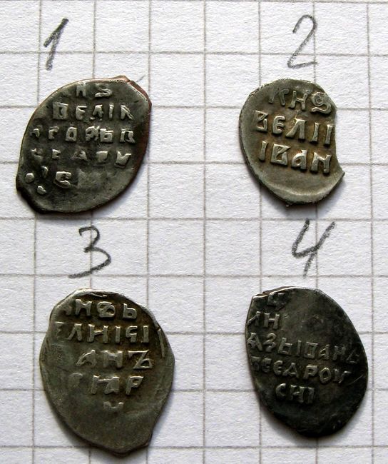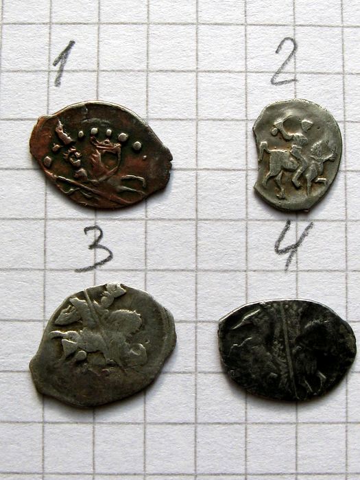 QUOTE(Sigment @ Aug 22 2013, 16:56) По стоимости подскажите. Спасибо! 1.Одна из самых частых новгородок Василия-3. 1000-1500р. 2.Иван-3. Т.н. гибридная новгородка. Штемпель оборотки резан вручную. Редкая, но портит двойной удар. Около 2000р. Оценка дана с учетом веса, близкого к норме. |