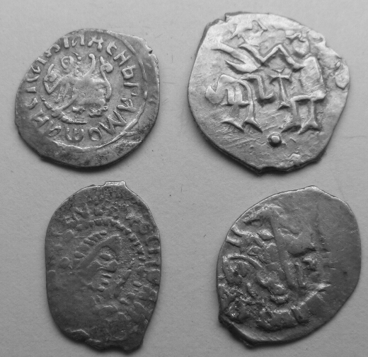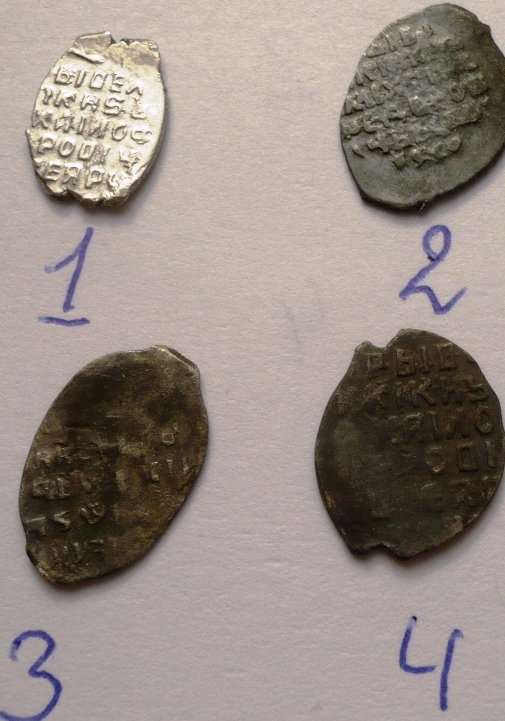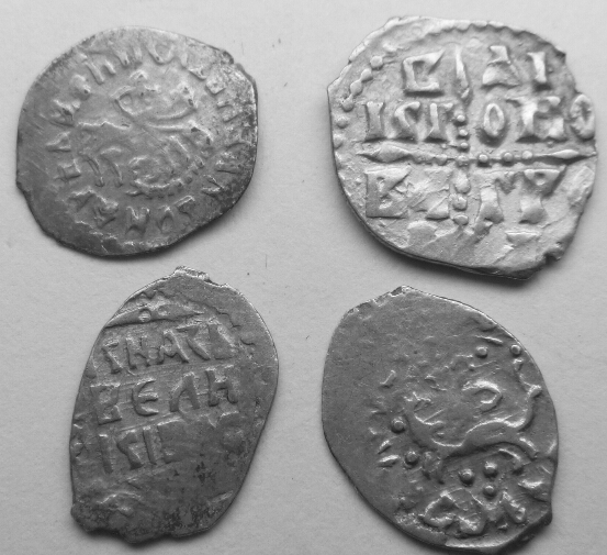 QUOTE(ррррр @ Sep 14 2013, 16:22) Благодарю за ответ. Вот еще немного. 1,2,4 - Михаил: московская и новгородские копейки, 3 - псковская копейка Грозного. -------------------- новый каталог по царской чешуе