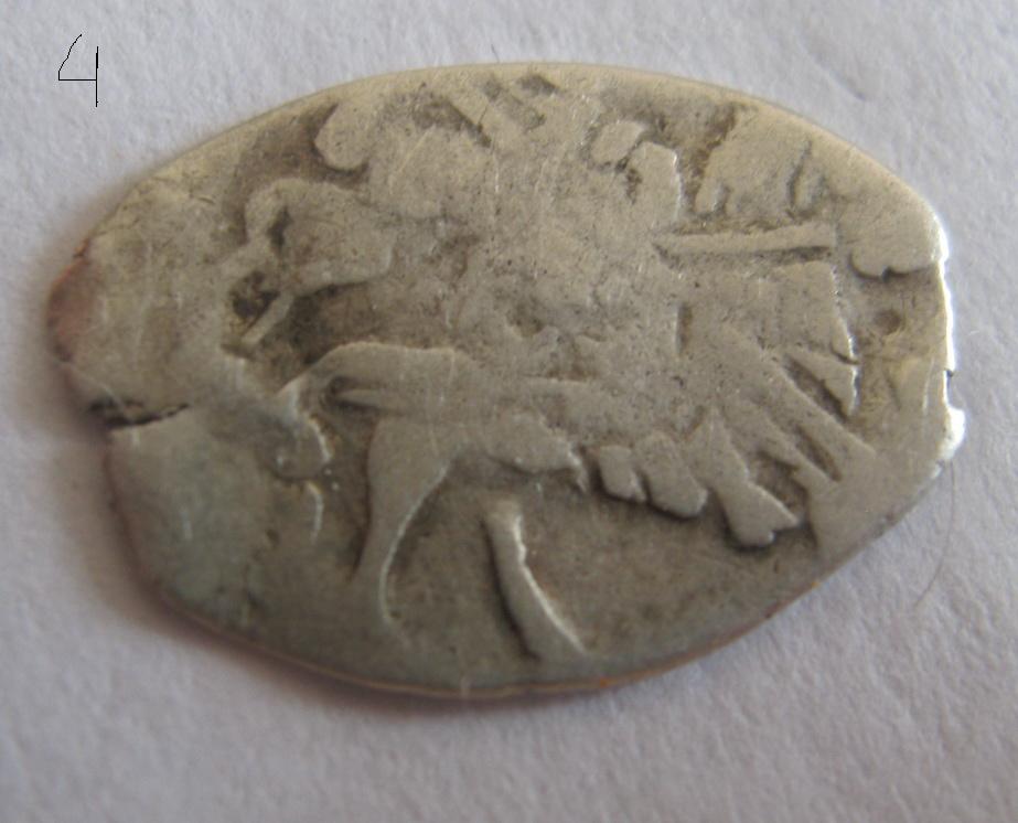 QUOTE(vbt @ Oct 4 2013, 11:49) 1 - Василий Дмитриевич, Москва, всадник с мечом/ благопожелание Тохтамышу, 1500-2000 в этом виде. 2 - пмсм, двустороннее подражание, но не исключаю, что и обрезанный дирхем (следы отрубания проволочной заготовки неявные). 3 - Анонимная нижегородская денга, 1500-2000. 4 - Василий Дмитриевич, Москва, барс/ русский строчник, ок. 500. Большое спасибо. |
