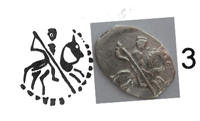 QUOTE(pgss @ Oct 26 2013, 12:25) Посмотрите пожалуйста, есть ли что интересное? И чьи они, я узнал только Ивана Есть интересный Шуйский. По порядку: 111 ФИ, 260 (VI) Шуйский, 95 Грозный, 265 Шуйский, денга Грозного (не стал возиться), 220 БФ (вот тут пришлось повозиться, см. картинку) Вложенные эскизы изображений |