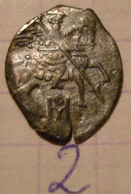 Спасибо всем!!! И еще три чешуйки на определение и оценку - вторая какая то странная, как ни крутил так и не понял что изображено со стороны всадника, и на часть его ни как не похоже 2-я Борис Годунов, КГ 193, простая. |
