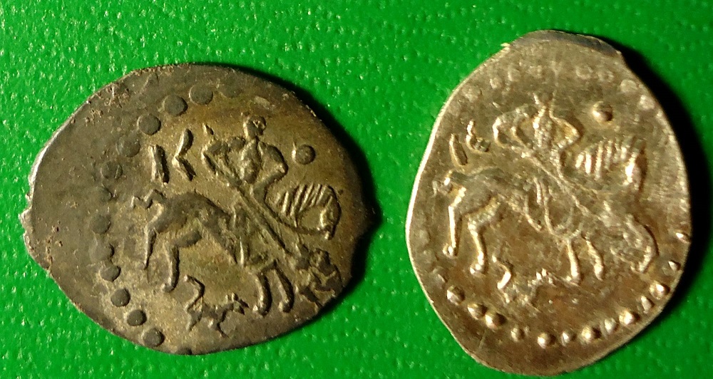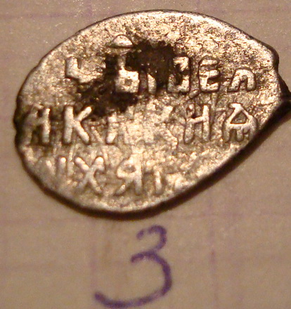 QUOTE(vodoley @ Dec 13 2013, 20:31) 2 - Борис Федорович Годунов московская копейка № по КГ 166 (9 ст.ред.) Спасибо! А по третьей не понятно? Вроде тоже Годунов |