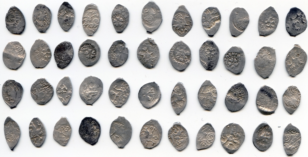 QUOTE(vbt @ Dec 19 2013, 19:39) Цапля с топором - анонимная суздальская денга второй половины 1410-х гг. Чеканена при администрации Василия Дмитриевича московского. Спасибо, а остальные чьих будут ? |