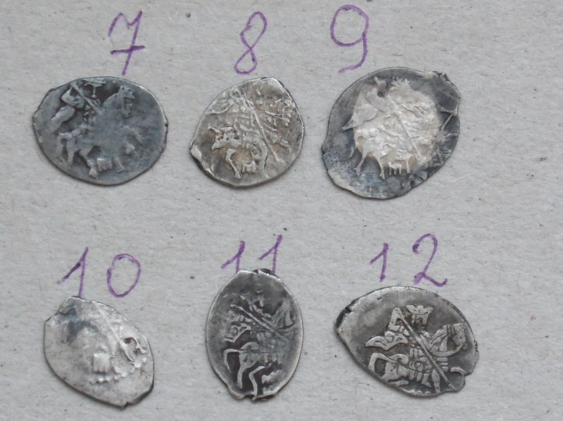 QUOTE(tundelta @ Jan 23 2014, 16:35) Помогите с определением данной монетки (пуло?) попалась такая впервые, сопутка - тверские "птички", пуло, кованина. Вес - 0.98 гр. Это неописанный Гайдуковым в 1993 году пул, по типу кашинского зверь - голгофа. Встречается, состояние для него обычное. |