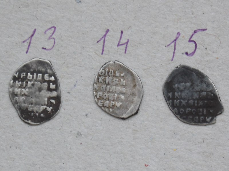 QUOTE(мзт.р @ Jan 24 2014, 13:46) Ещё. 13,14 - московская копейка Михаила Федоровича № по КГ 367 (без ст.ред.) 15 - московская копейка Михаила Федоровича № по КГ 378 (без ст.ред.) -------------------- Человек, который много совершает, и ошибается во многом (Еврипид)