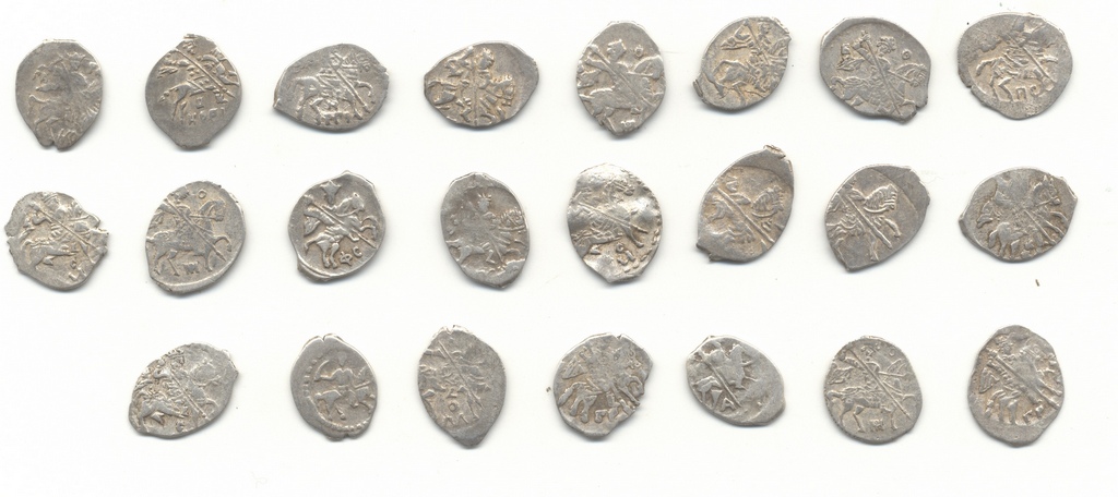 QUOTE(vbt @ Apr 5 2014, 20:36) Верхняя - региональный пореформенный чекан ВД в московских землях. Есть версия, что в Переславле-Залесском, но это пока не более, чем одно из возможных мест чекана денег этого типа. Зачетный экземпляр! В районе 6-8 тр, полагаю. Две нижние - дореформенные нижегородки, пмсм. 1-1,5 и 0,5-1 тр соответственно. Сергей , спасибо Вам большое . А по двум крайним уделам возможно точно сказать имена Князей ??? Или это подражания широкого круга ??? С уважением , Илья . -------------------- Теряет тягу к жизни тот , кто знает все на день вперед .