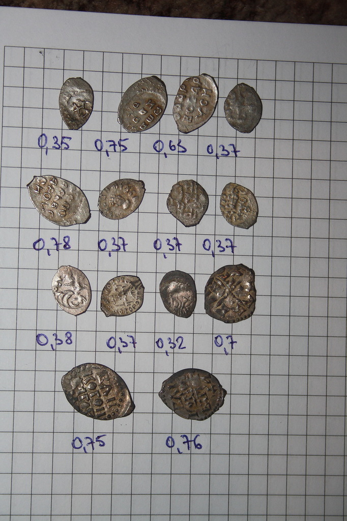 QUOTE(vodoley @ Apr 7 2014, 20:07) 1,2,5 - Михаил Федорович 3,6,8 - Петр I 7 - Грозный Оперативно!.Спасибо.А по ценнику ,стоит чего или на переплавку? |