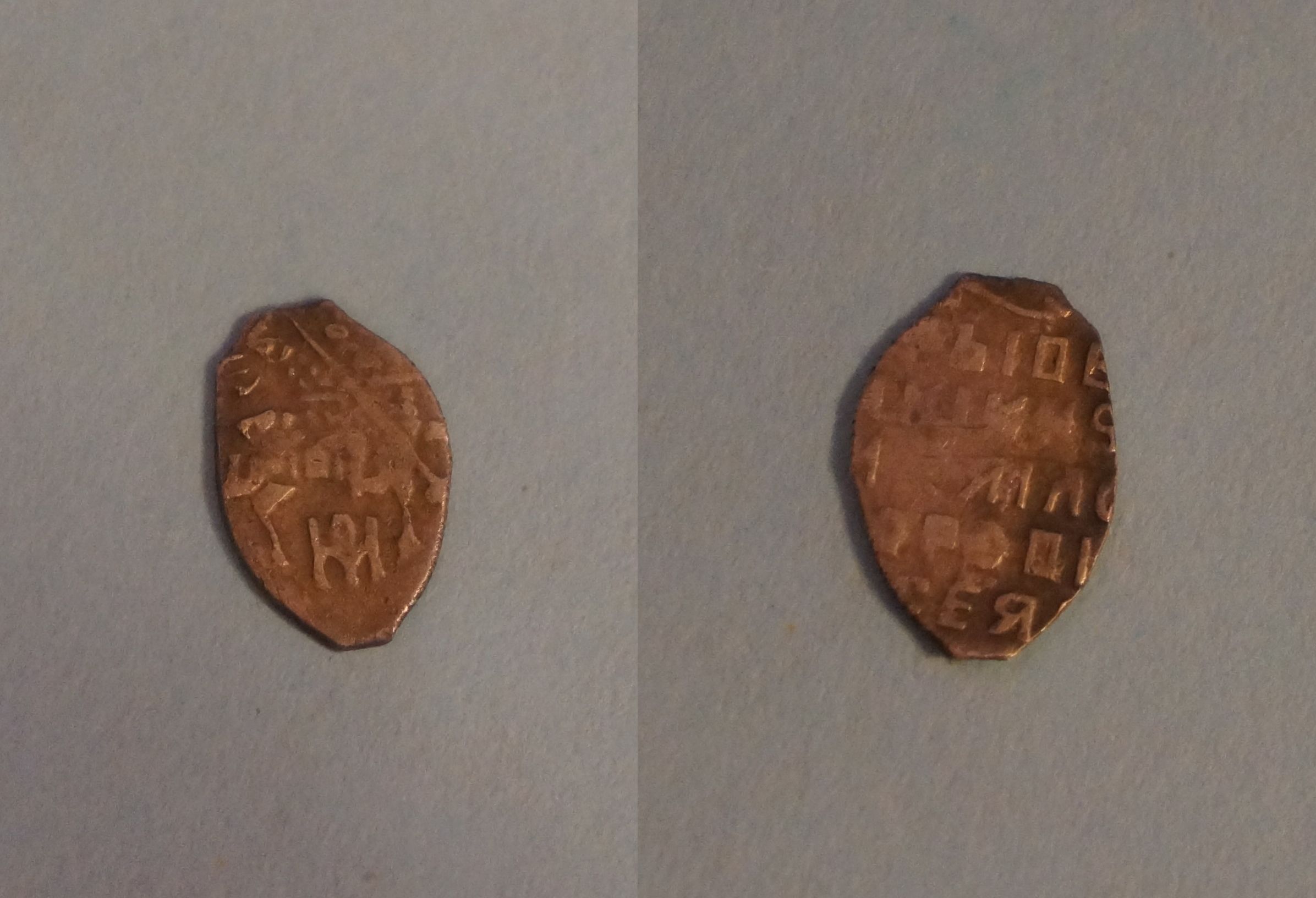 QUOTE(terrano @ Apr 10 2014, 19:31) Помогите с определением и оценкой. Заранее спасибо. мечевая копейка ивана грозного, простейшая монета в плохом виде. |