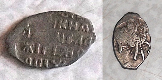 Помоги разобраться с рисунком и определением - очень чёткий чекан, не затертые грани рисунка, только что изображено и что за монета не пойму. Поднята в куче с Грозным, Шуйским, Лжедмитрием, Годуновым - преимущественно Новгородский и Псковский чекан.
