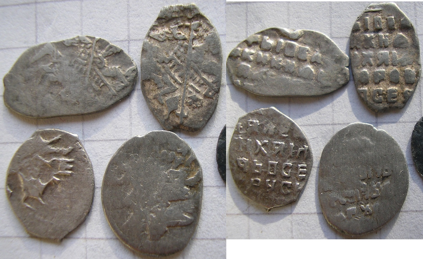QUOTE(vodoley @ Apr 25 2014, 08:28) 1 - Грозный, № 60, простая 2 - копейка Михаила Федоровича 3 - копейка Михаила Федоровича, №482, простая Спасибо. -------------------- С уважением Марина.
