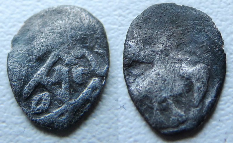 QUOTE(Беспризорный @ Apr 26 2014, 23:15) Уважаемые, помогите пожалуйста с определением чешуйки, все глаза сломал прочесть не могу... чья монетка? вес 0,6-0,65 гр. новгородская копейка Дмитрия Ивановича (Лжедмитрия 1), подломана. |