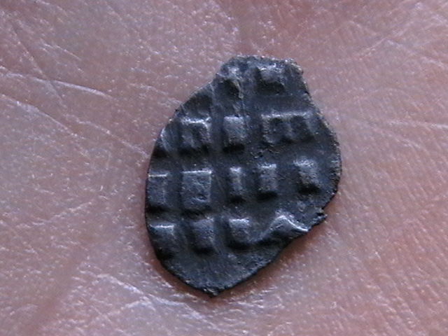 Встретилась неизвестная монетка. Вроде полуденьга, но чьей чеканки? Вес 0.22г