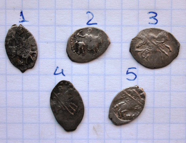 QUOTE(filyran @ May 6 2014, 19:24) 1 - Можайск, Иван Андреевич, поздний тип с сиреной. 2 - Темный, Мец №127. 3 - Темный, Мец №183. 4 - Темный, Мец №134. 5 - Темный, Мец №112. 6 - Темный, Мец №99 (если на оборотке голова) или 98 (если там всадник) - не разберу. 7 - Темный, Мец №202. 8 - Темный, Мец №176 (если всадник) или 177 (если голова). 9 - Верея, Михаил Андреевич, тип с доктором чумой. 10 - хз, похоже на Мец №179. 11 - Темный, Мец №183. 12 - Темный, Мец №134. |