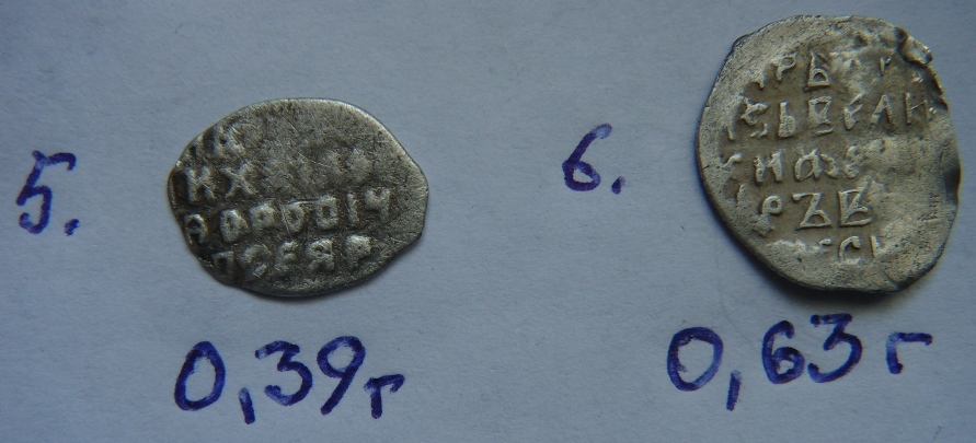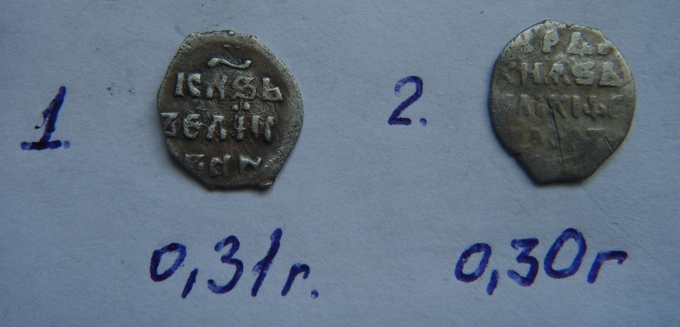 QUOTE(Kuzma @ May 21 2014, 09:45) Доброго Всем дня. Нужна помощь спецов с определением и оценкой. Похожие в каталогах нахожу но точно таких же нет. Всегда какие то отличия находятся. Заранее благодарен. 1 - тверская денежка ИванаIV, 2 - денга Федора Ив-ча.Простые. |
