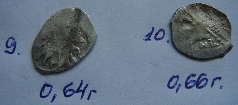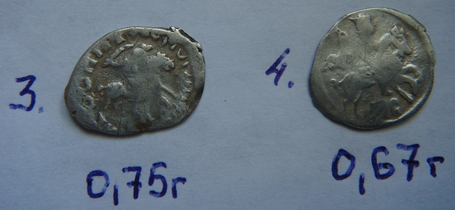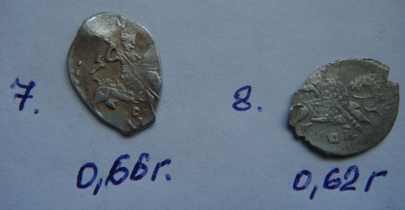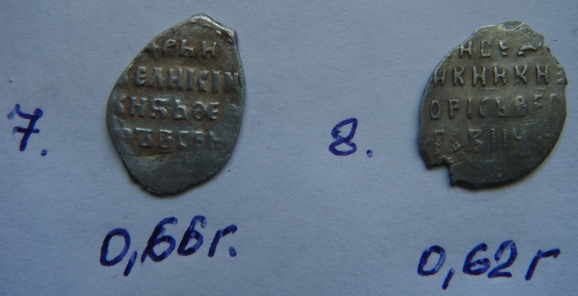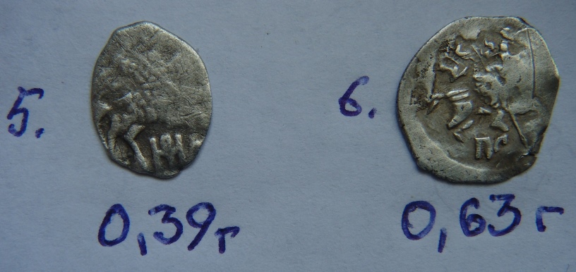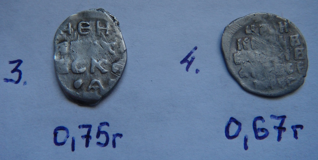 QUOTE(Macart @ May 20 2014, 21:44) День добрый, дорогие форумчане. В данной теме не силен, поэтому прошу помощи в атрибуции и оценке у специалистов. Чешуйки найдены на границе Калужской и Смоленской областей. 1 - копейка Грозного, № 76 по КГ, простая 3 - полушка Грозного 4 - копейка Петра I Сообщение отредактировано vodoley: May 21 2014, 11:03 -------------------- Человек, который много совершает, и ошибается во многом (Еврипид)