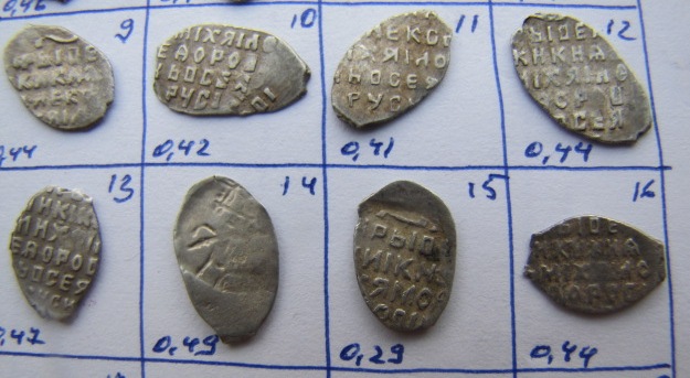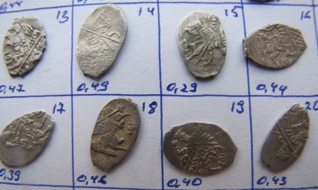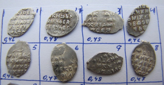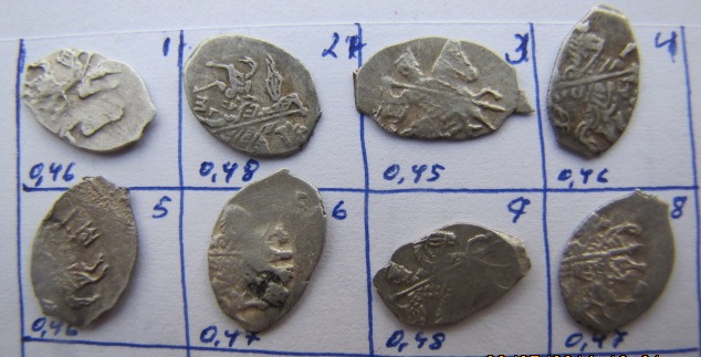 QUOTE(womd @ Jul 8 2014, 12:05) Доброго времени суток, ув. комрады) Помогите, пожалуйста, поточнее определить и оценить следующие чешуйки, предположительно Ивана Грозного, и Ивана III 1 - копейка Грозного, № 77 2 - московская деньга Ивана 3 3 - новгородская деньга Ивана 3 -------------------- Человек, который много совершает, и ошибается во многом (Еврипид)