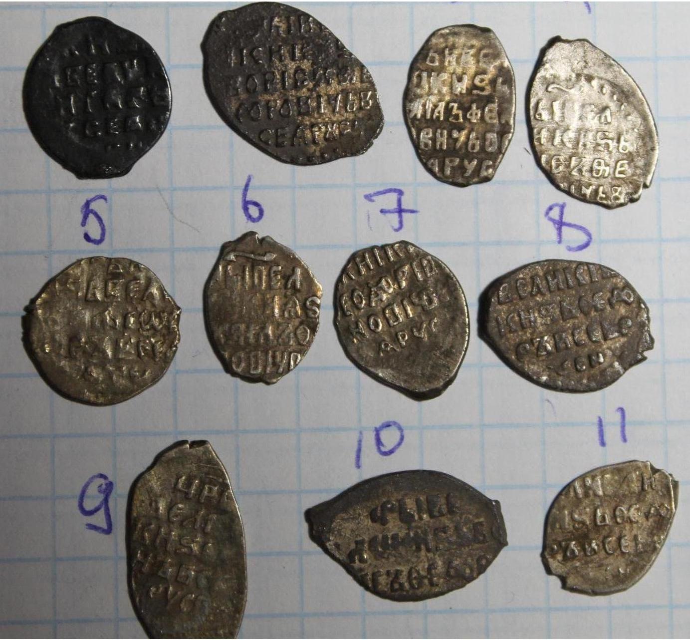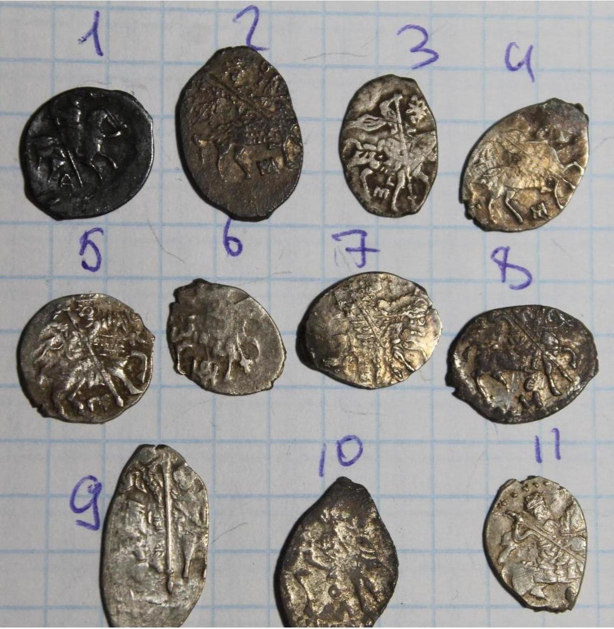 QUOTE(olgasintik @ Jul 22 2014, 11:27) Добрый день,помогите опредилить монетки и по возможности стоимость полушка, копейка Михаила Федоровича, копейка Федора Алексеевича, копейка Иван 4 копейка Федор Алексеевич, две деньги Ивана 4, копейка Михаил Федорович копейка Федор Алексеевич, копейка Михаил Федорович. деньга Иван 4 и копейка его же. |