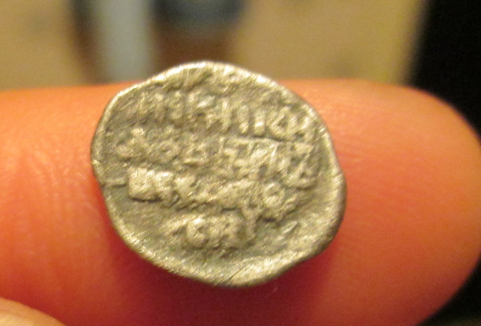 коп. рельефная , под конём вот такая буква ( на фото попробовал срисовать , чёрным ) , может( о м ) , может ( Х I ), вживую отчётливо видно коня ,всадника , копьё прямое , четыре ноги (полоски ) , хвост. очень тоненькие ноги коня , копьё меж передних ног лошади , голова лошани маленькая , но видно отчётливо , задние ноги и лошадь тощие , в мелкую полоску , вообщем какие-то полоски . посмотрите мож у вас получится рассмотреть и определить . спасибо . -------------------- нужны копии от производителя . пишите .
