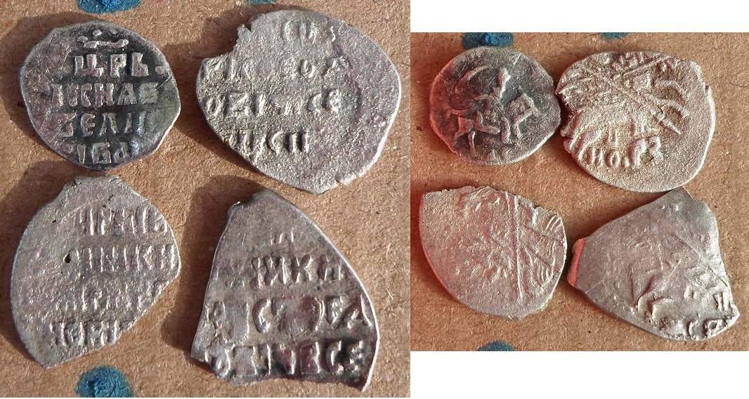 QUOTE(vodoley @ Aug 19 2014, 11:57) 1 - копейка Грозного, № 87 по КГ 2 - копейка Бориса Федоровича, № 173 по КГ 3 - Петр I 4 - московская копейка Михаила Федоровича Все обычные? |