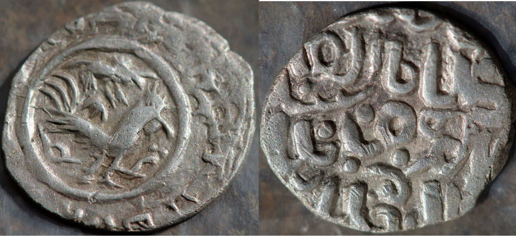 Просьба оценить монету деньга Дмитрия Ивановича Донского ... Л. с. Изображение петуха вправо, вокруг линейный ободок...за которым остатки круговой надписи.О. с. Остатки трехстрочной арабской надписи.