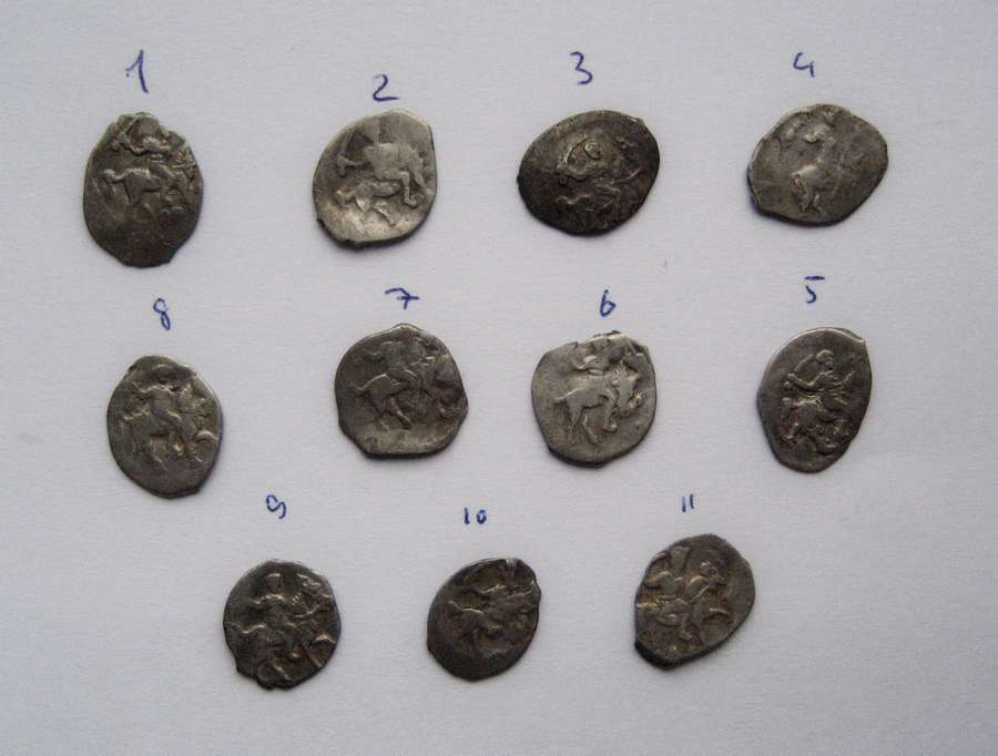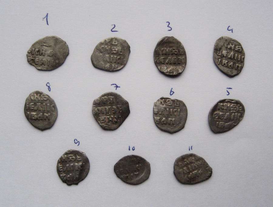 QUOTE(MakLay @ Oct 18 2014, 09:10) Это копейки Василия Шуйского. Две верхние - Псковские КГ265. Нижняя - Новгородская КГ274, такое ощущение, что она обрезана под меньший вес. Все простые. И вам большущее спасибо. |