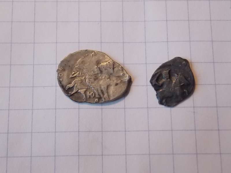 Помогите определить монеты и примерную стоимость. Вес большой чешуи 0,52 гр. вес маленькой 0,48 гр. |