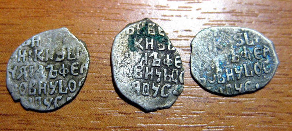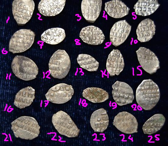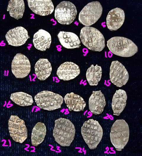 1,4 - Петр I 2 - Алексей Михайлович, медная копейка 3,6 - деньги Грозного 5 - совместное правление Ивана и Петра Алексеевичей, с именем Ивана, двю удар [/q Большое спасибо! Я так понимаю,ценности не представляют? |