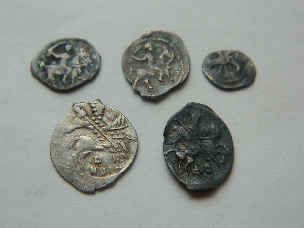 QUOTE(aprel @ Dec 15 2014, 19:37) Уважаемые форумчане ,просьба определить чешую и оценить.(нижние две, я так понимаю Петр 1 ) заранее благодарю. ![]() ![]() 1,2 - московские копейки Михаила Федоровича -------------------- Человек, который много совершает, и ошибается во многом (Еврипид)