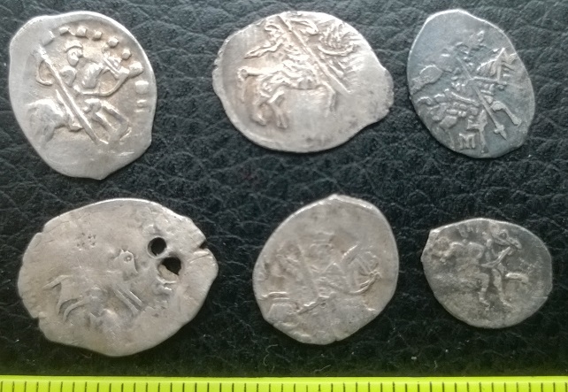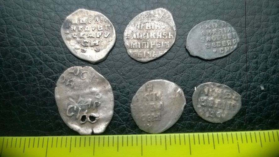 QUOTE(tyrant @ Dec 25 2014, 15:10) Добрый день. Прошу помощи в определении разных монет , но найденных на одном поле: 1,5 - копейки Грозного 2- Лжедмитрий 3 - московская копейка Михаила Федоровича 4 - новгородская деньга Василия 3 6 - деньга Грозного -------------------- Человек, который много совершает, и ошибается во многом (Еврипид)