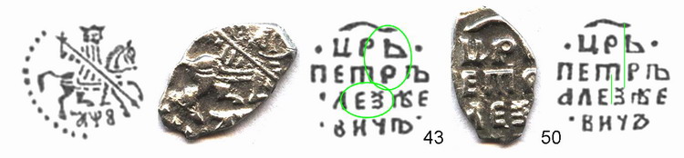 QUOTE(Колегор @ Jan 17 2015, 22:59) Благодарю за иллюстрированный ответ! К сожалению, не имею возможности плюсануть. Однако, если в случае с атрибуцией монеты Алексея Михайловича Ваша аргументация весьма убедительна, то касательно монеты Петра вынужден не согласиться - форма буквы "Е" в слове "ПЕТР"(несколько прямоугольное), буквы "З" и верхней буквы "Р" не соответствует о/с №43, хотя другие буквы не совсем соответствуют и №50. Непонятно. Уважаемый Колегор, ни в коем случае не пытаюсь вас переубедить, но коль возникло непонимание, то скажу, что при идентификации монет более важную роль играет взаимное расположение букв, а не отдельные их далеко не определяющие детали, которые вполне могли выкрашиваться в процессе производства. При Михаиле Федоровиче монеты теряли целые фрагменты - буквы легенды, ноги коня, наконечники копья. Да и прорисовки деталей делались по реальным монетам со всеми их изъянами от хождения. Именно поэтому, в данном случае, следует в первую очередь смотреть на взаимное расположение букв «Ь» и «Р», «Т», «Е» и «КСИ». Апеллировать к прорисовке одной буквы, не обращая внимания на отклонения других, это уж как то некорректно. Так что, уважаемый, это просто аргументы того, что, на мой взгляд, перед нами копеечка, выбитая на Кадашевском денежном дворе в 1702 году. По КиГ это № 1920, выбитый штемпелями 19 и 43. Как то вот так... Вложенные эскизы изображений -------------------- Знаешь - говори, хочешь узнать - слушай