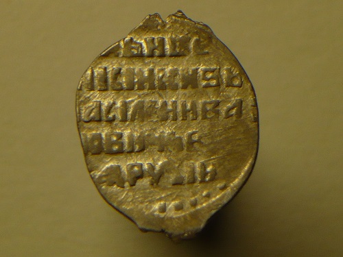 QUOTE(Дикодим @ Jan 18 2015, 02:45) И еще одна на определение. Вес 0,66 г. Василий Шуйский КГ №249 - простая. -------------------- Коллеги, успехов в Поиске в Новом году!