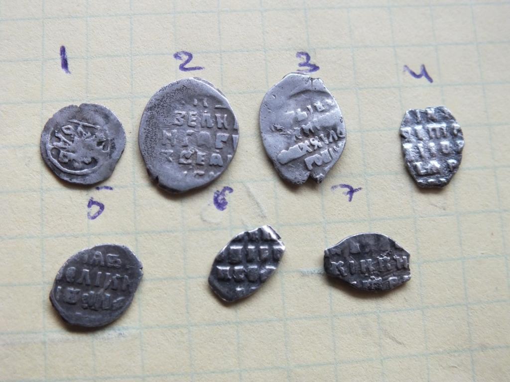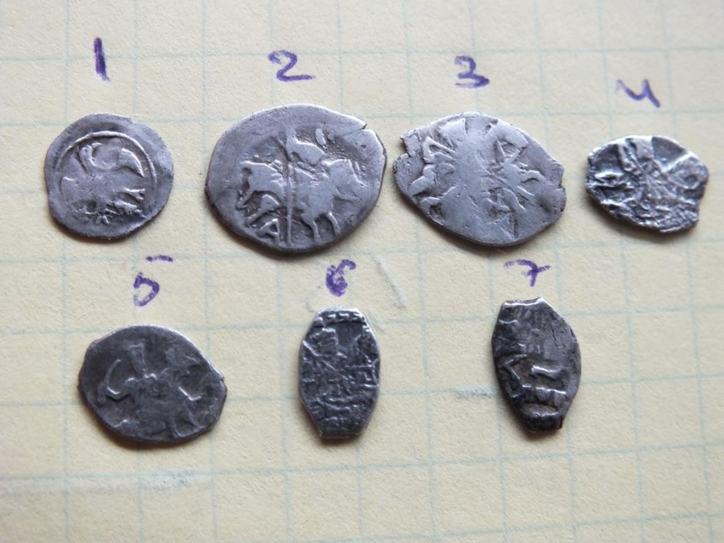 QUOTE(робаКОП @ Jan 24 2015, 17:09) Всем доброго времени суток! Помогите определить и оценить монетки. Заранее благодарю. 1-полушка КГ 140 2- Коп. Грозног КГ 74 3- коп. Мих.Фед. 4,6,7. коп. Петр Ал. ( единоличное правление) 5- денга Грозного КГ 60 |