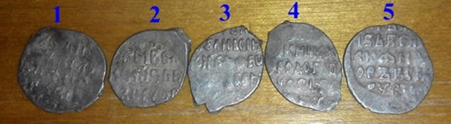 QUOTE(Dostavatel @ Jan 26 2015, 20:56) Прошу помощи в определениии данных чешуек по КГ. 1. Труп Псковской копейки Федора Алексеевича, КГ134. 2. Московская копейка Бориса Федоровича, КГ163. 3. Новгородская копейка Федора Алексеевича, КГ111. 4. Новгородская копейка Федора Алексеевича, КГ115. 5. Псковская копейка Федора Алексеевича, КГ134. -------------------- В этом мире нет тайн, есть только скрытая правда - правда, таящаяся в глубине.