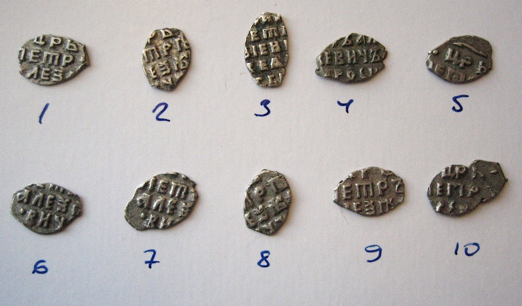QUOTE(Paparatz @ Feb 17 2015, 18:43) Все монеты за исключением третьей чеканены на Кадашевском денежном дворе в период единоличного правления Петра I Алексеевича: 1. Датированная копеечка, чеканенная в 1702 году, КиГ № 1814 (9-12), рядовая, ~70±10 рублей; 2. Датированная копеечка, чеканенная в 1704 году, КиГ № 2014 (34-64), рядовая, ~60±10 рублей; 3. Копеечка, чеканенная на Старом денежном дворе в 1716 году, КиГ № 1777 (17-18), рядовая, ~130±20 рублей; 4. Датированная копеечка, чеканенная в 1709 году, КиГ № 2114 (5-12), рядовая, ~90±10 рублей; 5. Датированная копеечка, чеканенная в 1703 году, КиГ № 2002 (32-64), рядовая, ~70±10 рублей; 6. Датированная копеечка, чеканенная в 1702 году, КиГ № 1918 (19-40), рядовая, ~70±10 рублей; 7. Датированная копеечка, чеканенная в 1702 году, КиГ № 1953 (24-40), рядовая, ~60±10 рублей; 8. Датированная копеечка, чеканенная в 1704 году, КиГ № 2021 (34-83), рядовая, ~60±10 рублей; 9. Датированная копеечка, чеканенная в 1702 году, КиГ № 1845 (11-23), рядовая, ~70±10 рублей; 10. Датированная копеечка, чеканенная в 1703 году, КиГ № 1986 (31-63), рядовая, ~70±10 рублей. Сообщение отредактировано Tanais: Feb 18 2015, 00:05 -------------------- Знаешь - говори, хочешь узнать - слушай