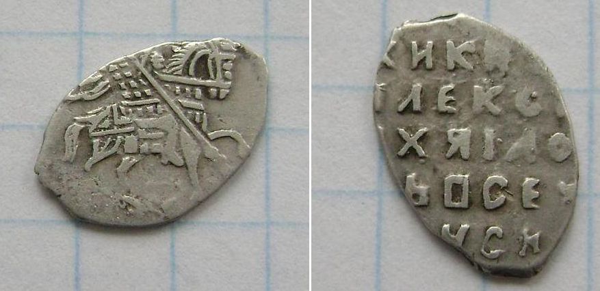 Здравствуйте. Выставлял ранее данную деньгу в спец ветке, но ответа так и не получил. Искал инфу в гугле и в каталогах и наткнулся на похожие деньги Петра Дмитриевича, Дмитровского княжества. Единственное отличие - на моей деньге под животным плетенка и на обратной стороне в подражании две плетенки. По весу все совпадает - 0,89 г.