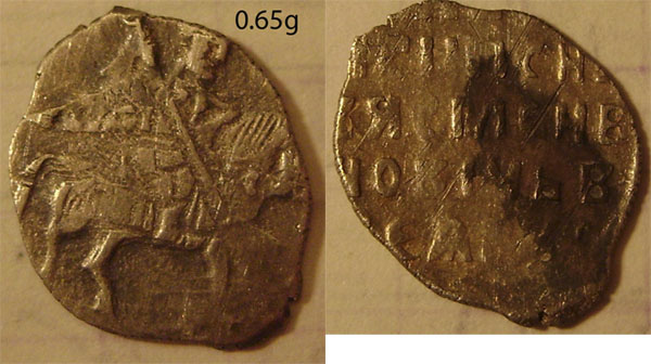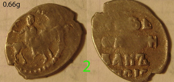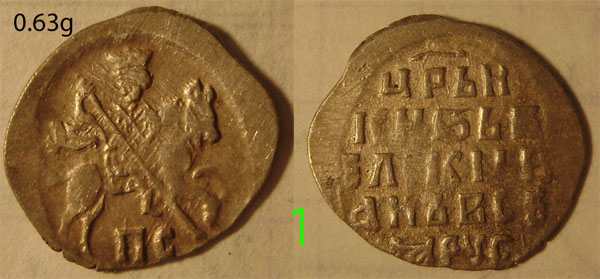 QUOTE(филин р @ Apr 18 2015, 11:09) Добрый день! Не могу определить эти чешуйки. Определите пожалуйста. новгородская копейка Михаила Федоровича, нечастая, но состояние неважное. вторая монета - его же московская копейка, простейшая и в плохом виде. |