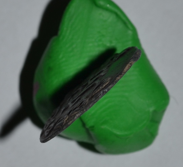 QUOTE(msmk @ May 8 2015, 23:40) Прошу помочь в определении..полуденга или обрезанная денга? Региональный чекан Василия Дмитриевича. На излете - очень легковесный. Не полуденга. |