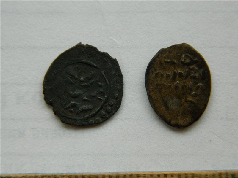 Добрый день , уважаемые ! Кто может , подскажите пожалуйста по пулам . Состояние конечно плохонькое , но интересно - данные типы еще не попадались , может не нижегородские . Хотя с крестом чем-то похож , но на обратке то ли решетка , то ли подражание строчнику типа куфики . И лицевые вроде обе с круговой надписью ? Вес - 1.06 и 0.74 . С уважением , Алексей .