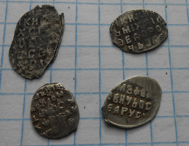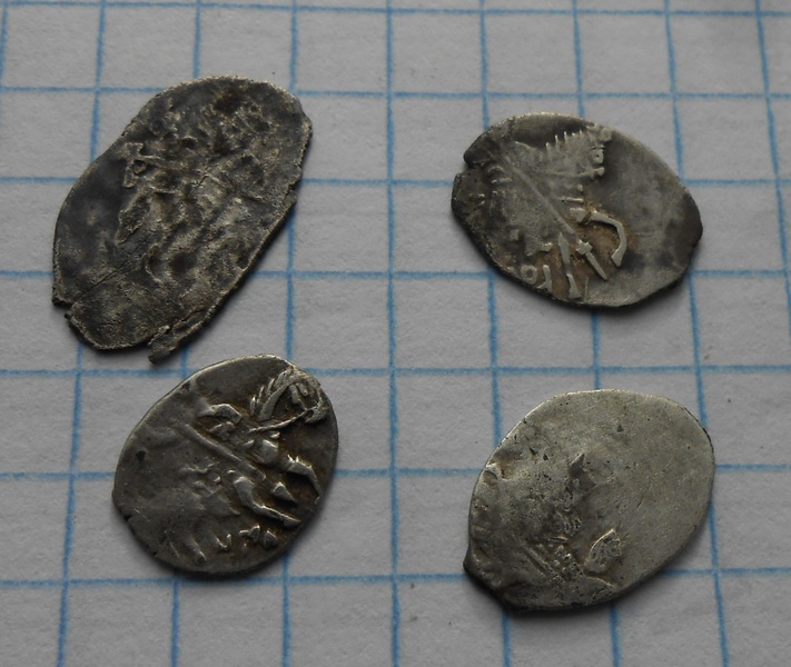 Пожалуйста, подскажите по монетке - какого удельного княжества и примерную Поднята в Тульской обл, вес - 0.40 гр Мыта только водой, патинка вся видна на фото... Вторая монетка. Поднята рядом с первой ....... вес на весах скачет в пределах - 0.39/0.40 гр [/quote]-------------------- Ищите и обрящете...