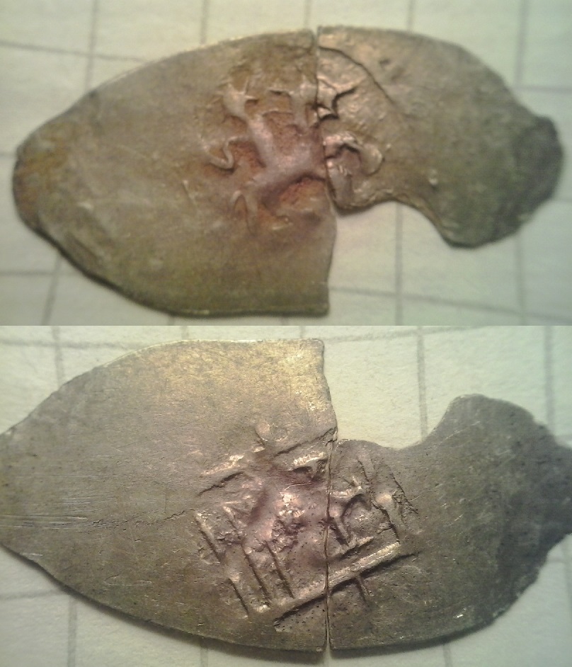 Добрый день, вот давно уже ломаю голову над побитой временем монетой. Может кто имеет представление к чьему чекану или княжеству её отнести? Заранее благодарствую за ответ. По-моему изначально был изображен барс с круговой легендой, может быть ошибаюсь. Вес монеты около 0.62г. имеет незначительные утраты. Извиняюсь за качество фото.