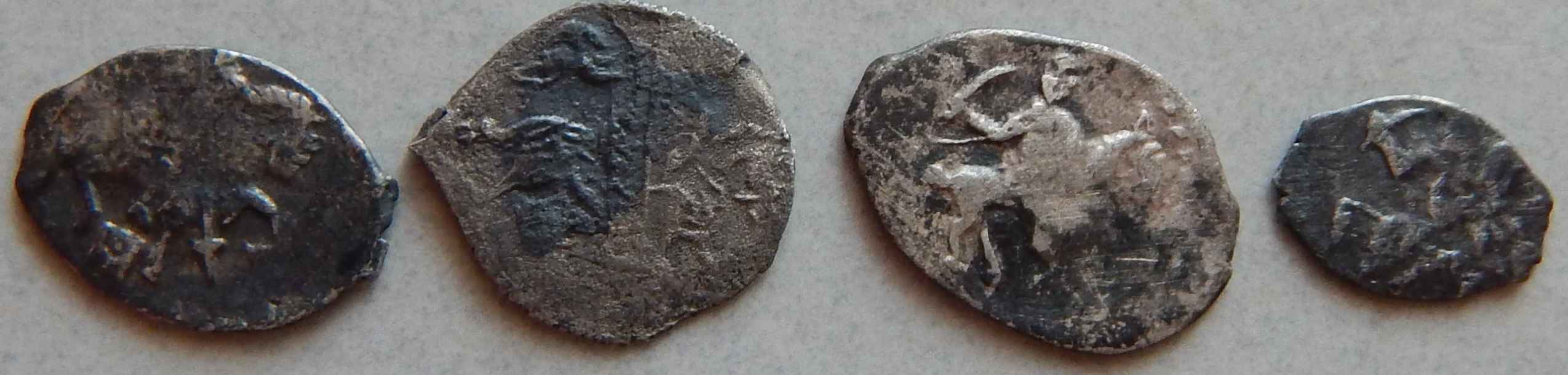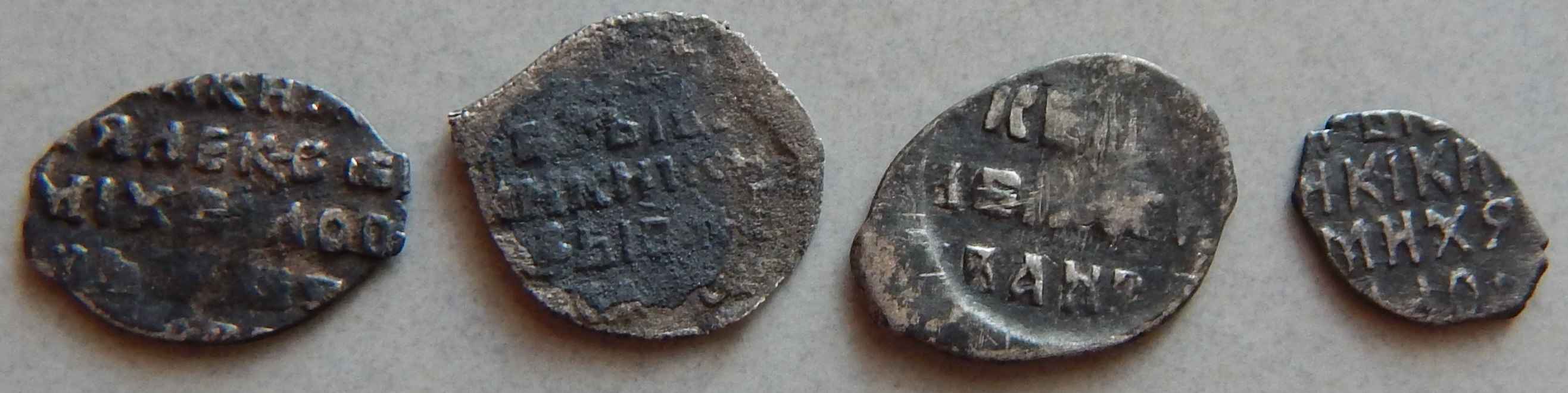 QUOTE(viktor.s @ Jun 8 2015, 13:15) Прошу определить и по цене подсказать. Вес 0,42г, 0,57г, 0,64г, 0,23г. 1 - копейка Алексея Михайловича 2 - копейка Грозного №95 по КГ, простая 3 - "мечевая копейка" Грозного №73 по КГ, простая 4 - денежка Михаила Федоровича №674 по КГ -------------------- Человек, который много совершает, и ошибается во многом (Еврипид)